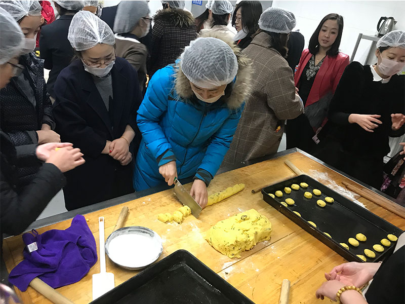 此次活動(dòng)邀請(qǐng)了玖福團(tuán)膳餐飲管理有限公司經(jīng)驗(yàn)豐富的專業(yè)面點(diǎn)師現(xiàn)場(chǎng)授課指導(dǎo)。面點(diǎn)師通過現(xiàn)場(chǎng)制作、演示、介紹,對(duì)參加活動(dòng)的女職工進(jìn)行指導(dǎo)幫助。大家認(rèn)真聽講解、做筆記,在面點(diǎn)師的指導(dǎo)下,一起配料、打發(fā)、和面、揉搟、烘焙,興致勃勃,爭(zhēng)相操作實(shí)踐,現(xiàn)場(chǎng)一片歡聲笑語(yǔ)。在大家的齊心努力下,奶香四溢的餅干和糖酥餅相繼出爐。大家爭(zhēng)相品嘗著自己的勞動(dòng)成果,喜笑顏開。